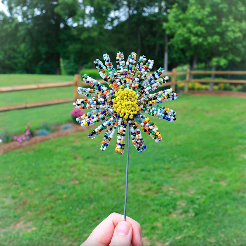 This plant stake was made by hand from artisans using beads were literally swept off the floor of the Khutsala artisans' workroom. Once left on the floor and unused, these beads are washed, dried and used in a new creation - as a true symbol of redemption.
