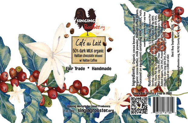 Café au Lait: 50% Dark - Organic Haitian Cocoa Beans, Organic Cane Sugar, Organic Cocoa Butter, Organic Milk Powder, Haitian Coffee Beans