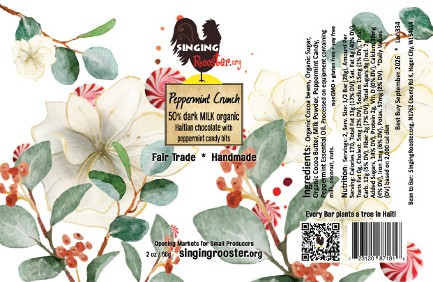 Peppermint: 50% Dark - Organic Haitian Cocoa Beans, Organic Cane Sugar, Organic Cocoa Butter, Organic Milk Powder, Peppermint Candy, Peppermint Essential Oil
