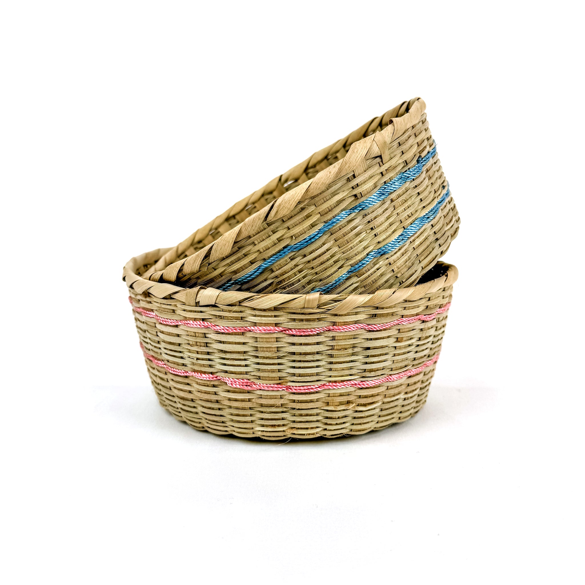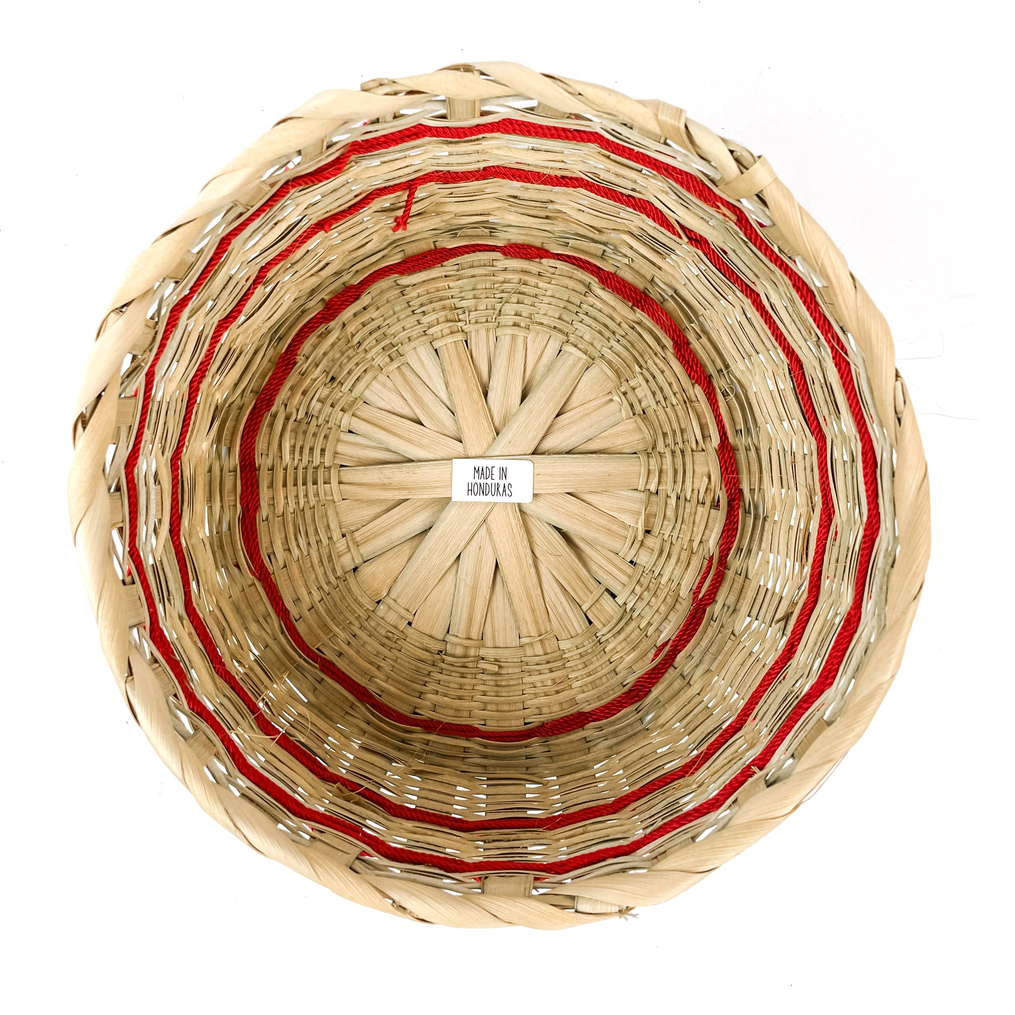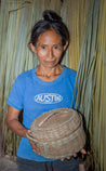 Each basket is meticulously woven by hand by The Women of San Juan. These artisans are part of an indigenous group in Honduras called the Tolupanes and come from the San Juan tribe. They live in a remote area called Montana De La Flor. Basket weaving is a handicraft that has been passed down through many generations. The suyate leaves used to make the baskets grows in the higher altitudes of Montana De La Flor and the women walk for several hours to pick it. It then has to be laid out to dry before being used to create the baskets.