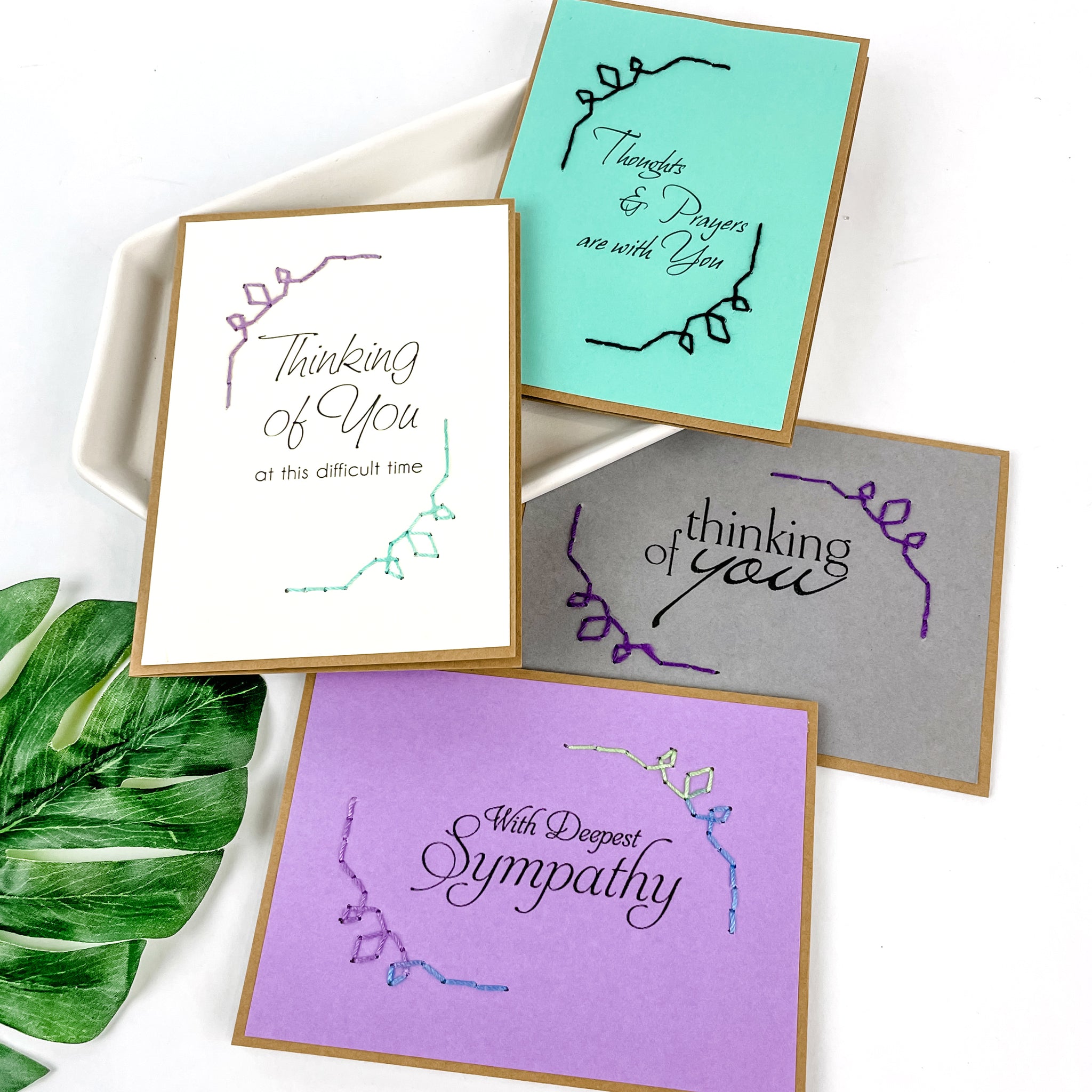 This beautiful set of greeting cards includes four cards (blank on the inside) and envelopes. The cards read: