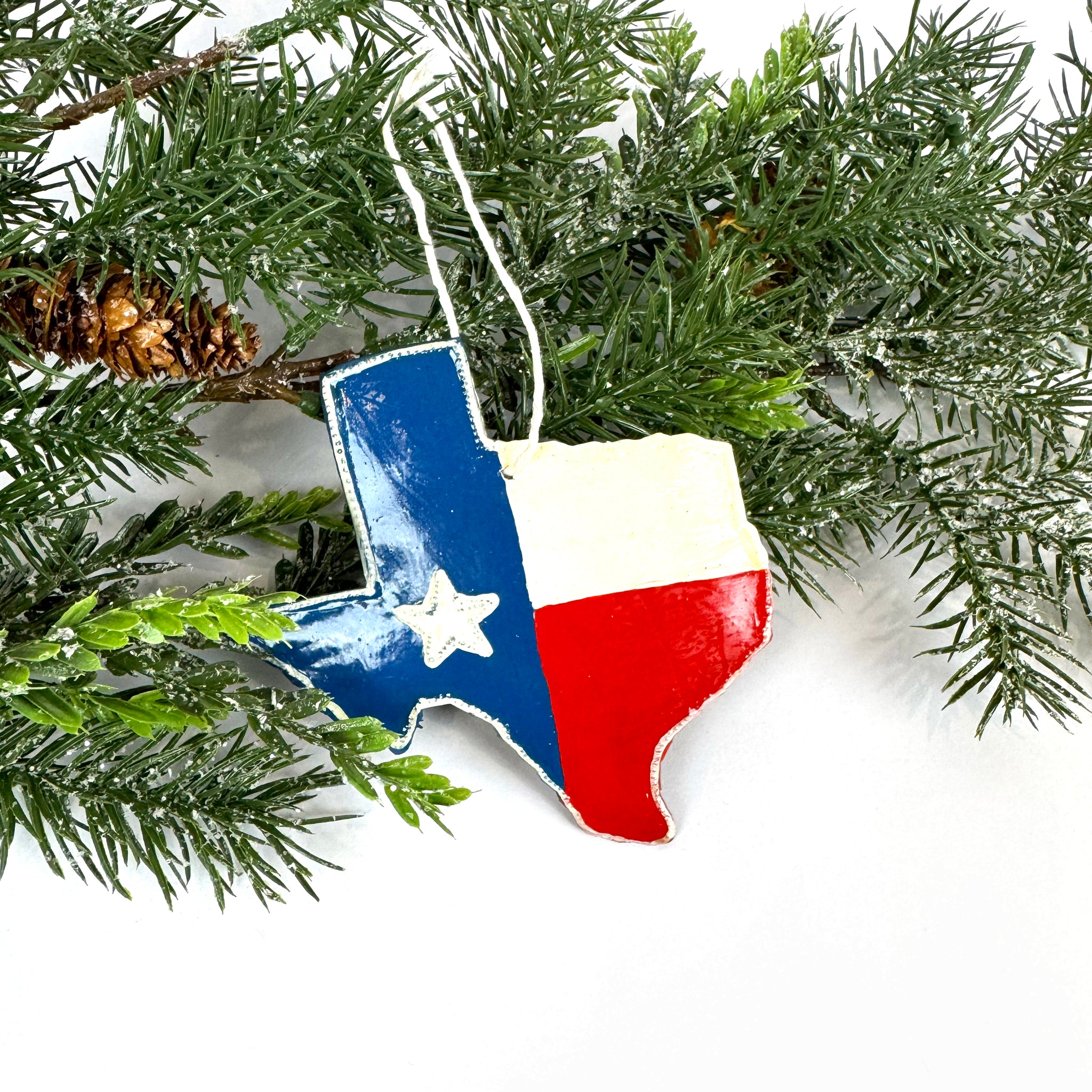 Show your Texas pride this holiday season with a handcrafted ornament made from recycled 55-gallon oil drums. Shaped like the Lone Star State and hand-painted with the bold Texas flag, each piece is artisan-made in Haiti, blending sustainable practices with skilled craftsmanship.