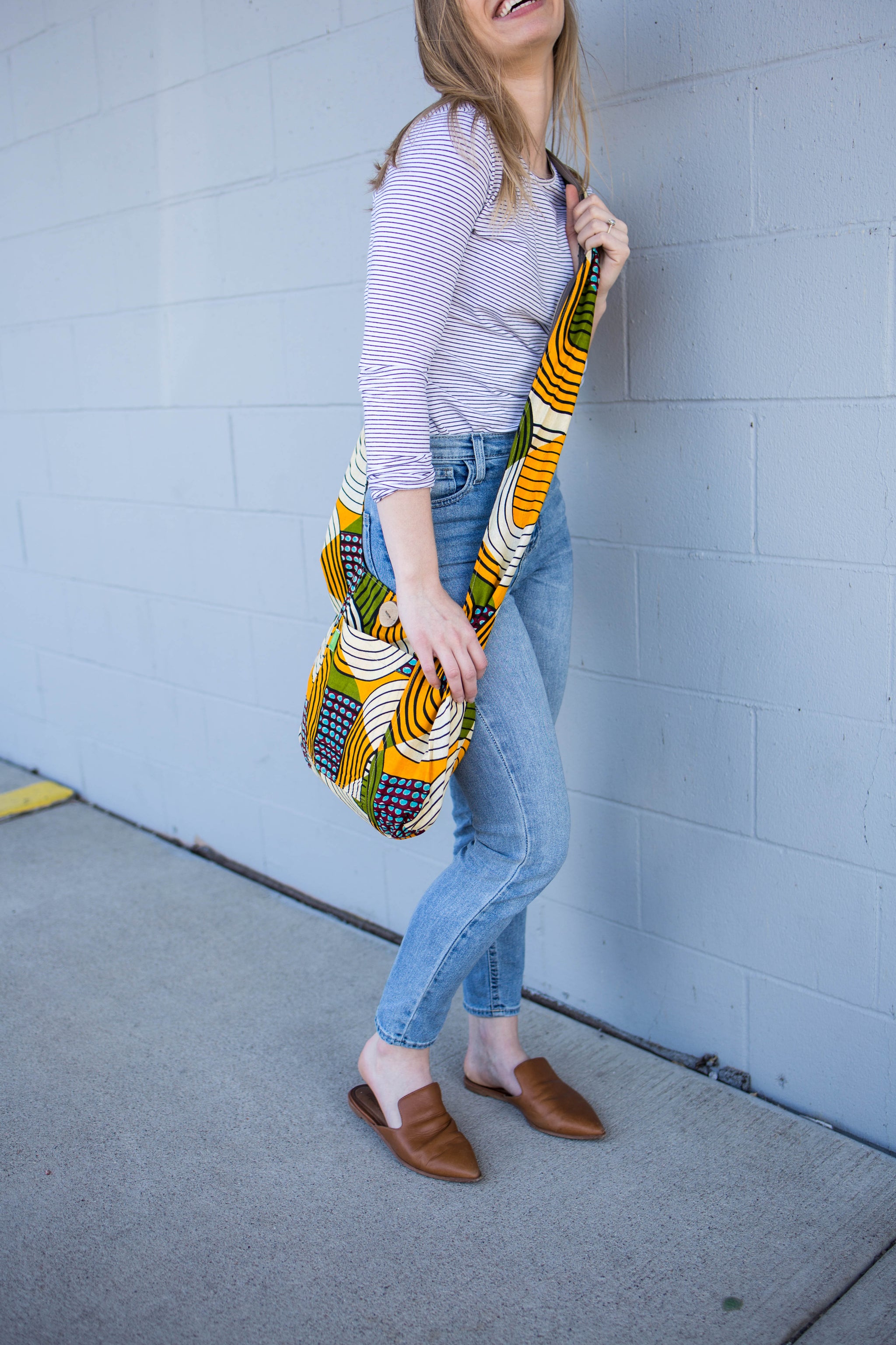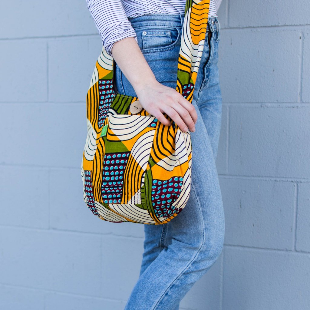 PLEASE NOTE: The pictures below show a sampling of the colors/patterns used to create these sling bags. Because the fabric available to the artisans varies, we cannot send you a specific color or pattern, but know that yours will be bright and beautiful!