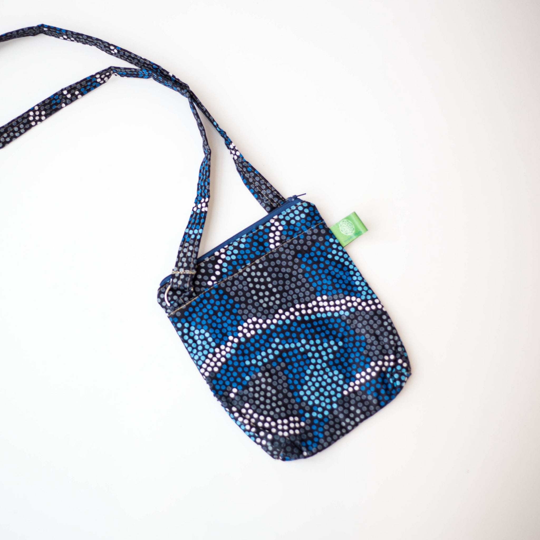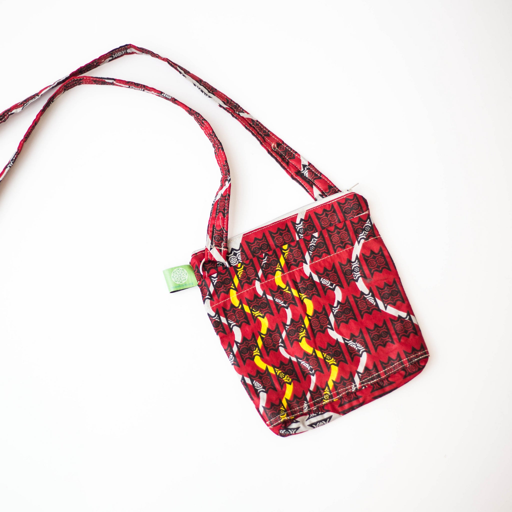 These travel bags are sewn by artisans at Timbali Crafts in Eswatini and are great for when you're out and about and only want to carry the essentials. Features zipper closure and inside patch pocket for extra security. Features a lightly padded strap that is long enough to be worn as a crossbody bag or tied to wear as a shoulder bag.