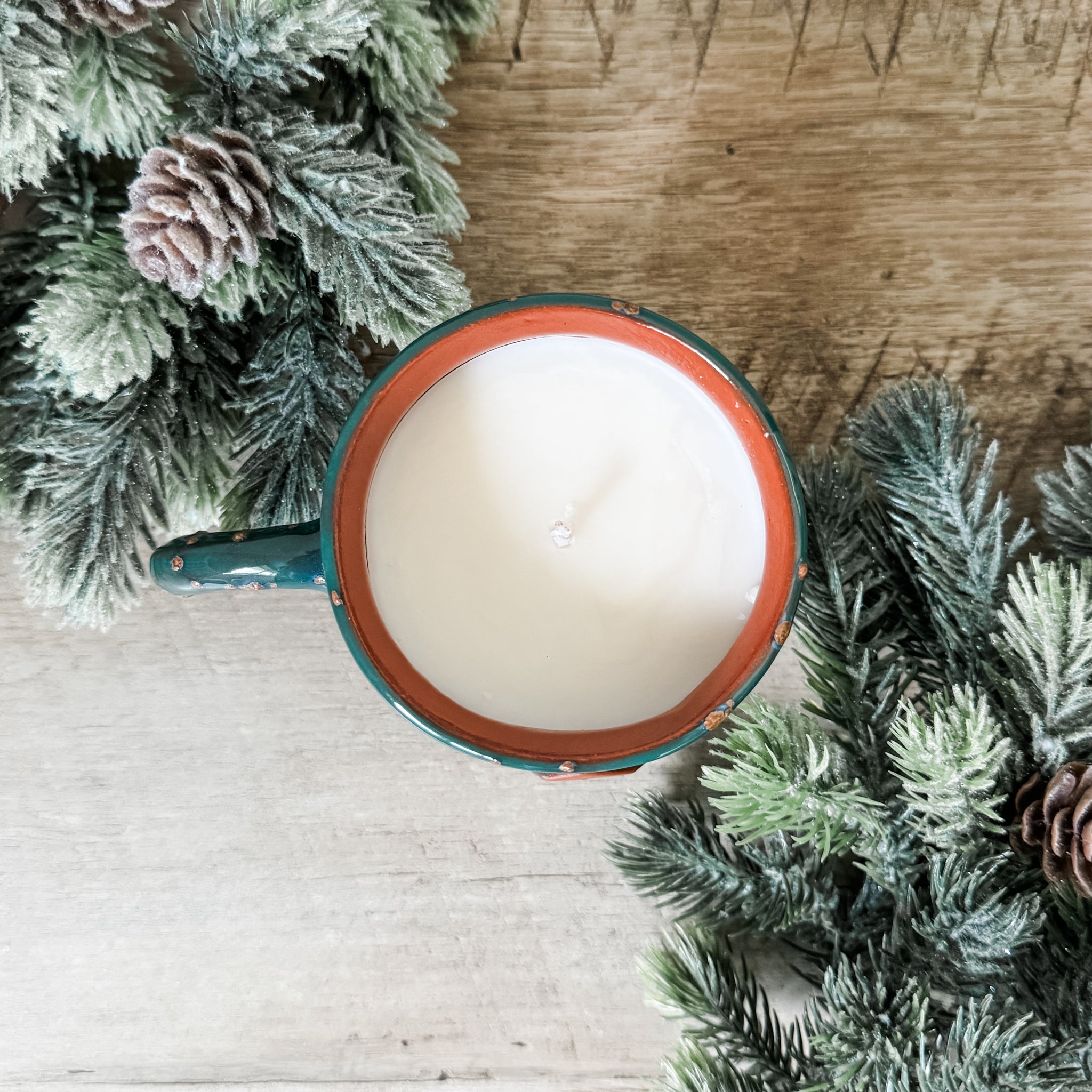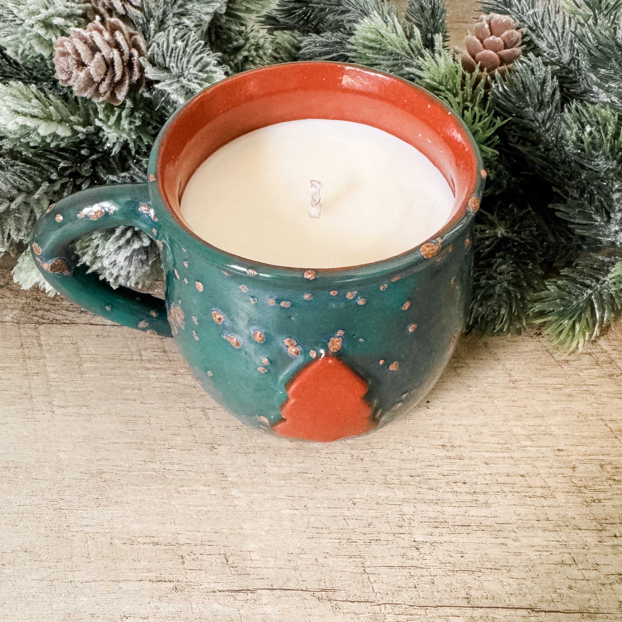 The candle comes in a beautifully handcrafted mug made by ceramic artists at Papillon Enterprise in Haiti. Each mug has been molded, glazed, and fired with care to provide a beautiful decoration piece for your home or office.
