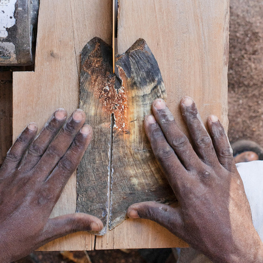 Each piece is created with ethically-sourced cow horns - a byproduct of the Haitian food industry - and has its own unique combination of various shades of milk, honey, caramel and charcoal tones. No two pieces have the exact same colors or patterns. The wood handles offers another dramatic touch of strength and beauty. The visual appeal is drawn from the color, luster, texture and grain of the mahogany and obechee species used - both native to Haiti and self-regenerating. After crafting, theyโre polished to a shine using non-toxic and hypoallergenic solutions and finished with water-based products that are safe for daily use.