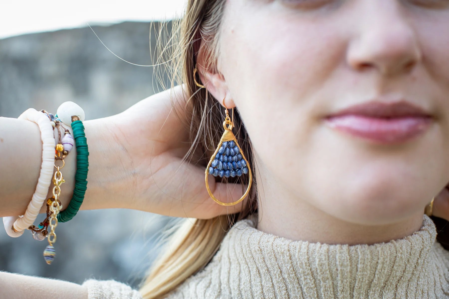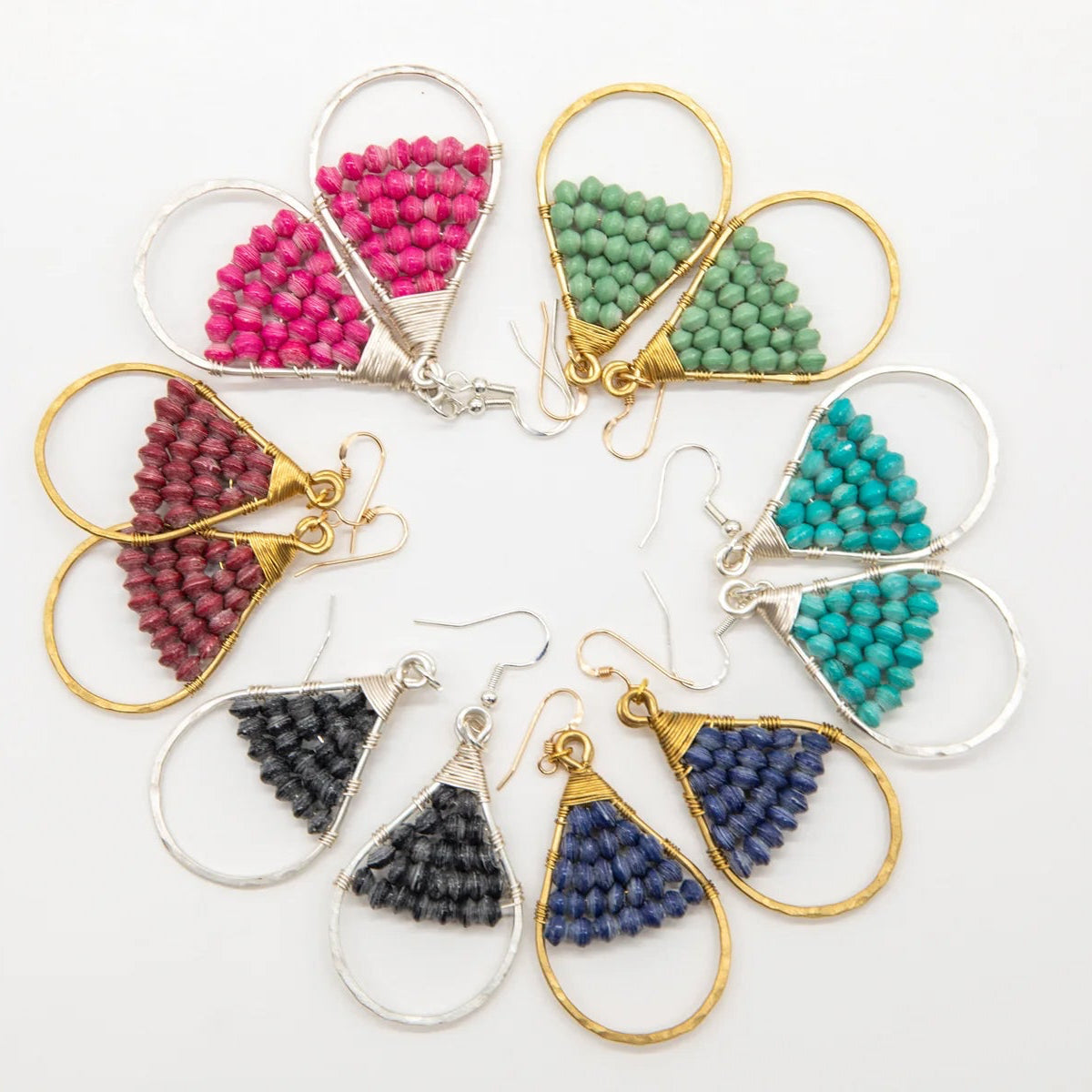 Can you believe those beads are paper?! They're the same size as seed beads! These teardrop earrings feature handmade mini paper beads fixed to a stylish teardrop-shaped wire!
