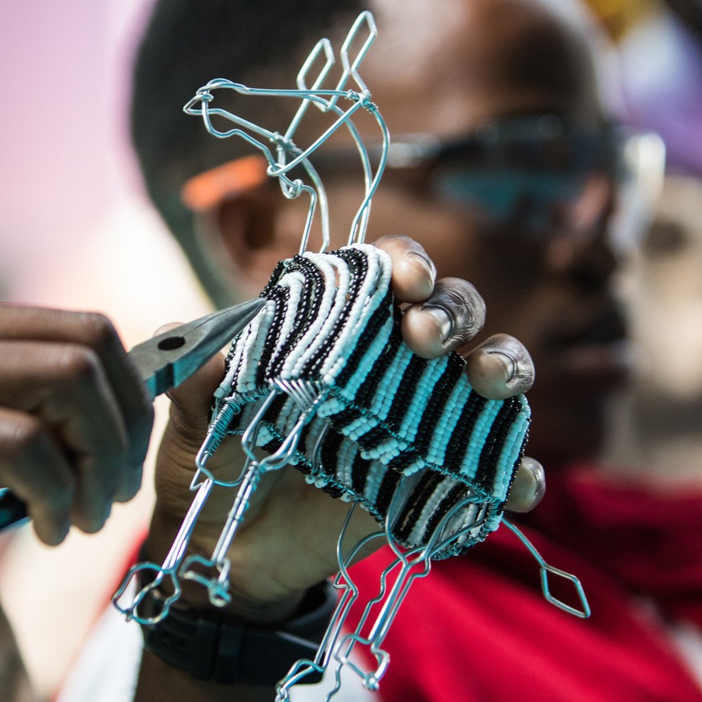 The beaded zebras are strong and very well-made. Once the wire bodies have been formed, it can take an entire day to add each and every bead to complete one zebra. The craftsmanship is truly amazing.